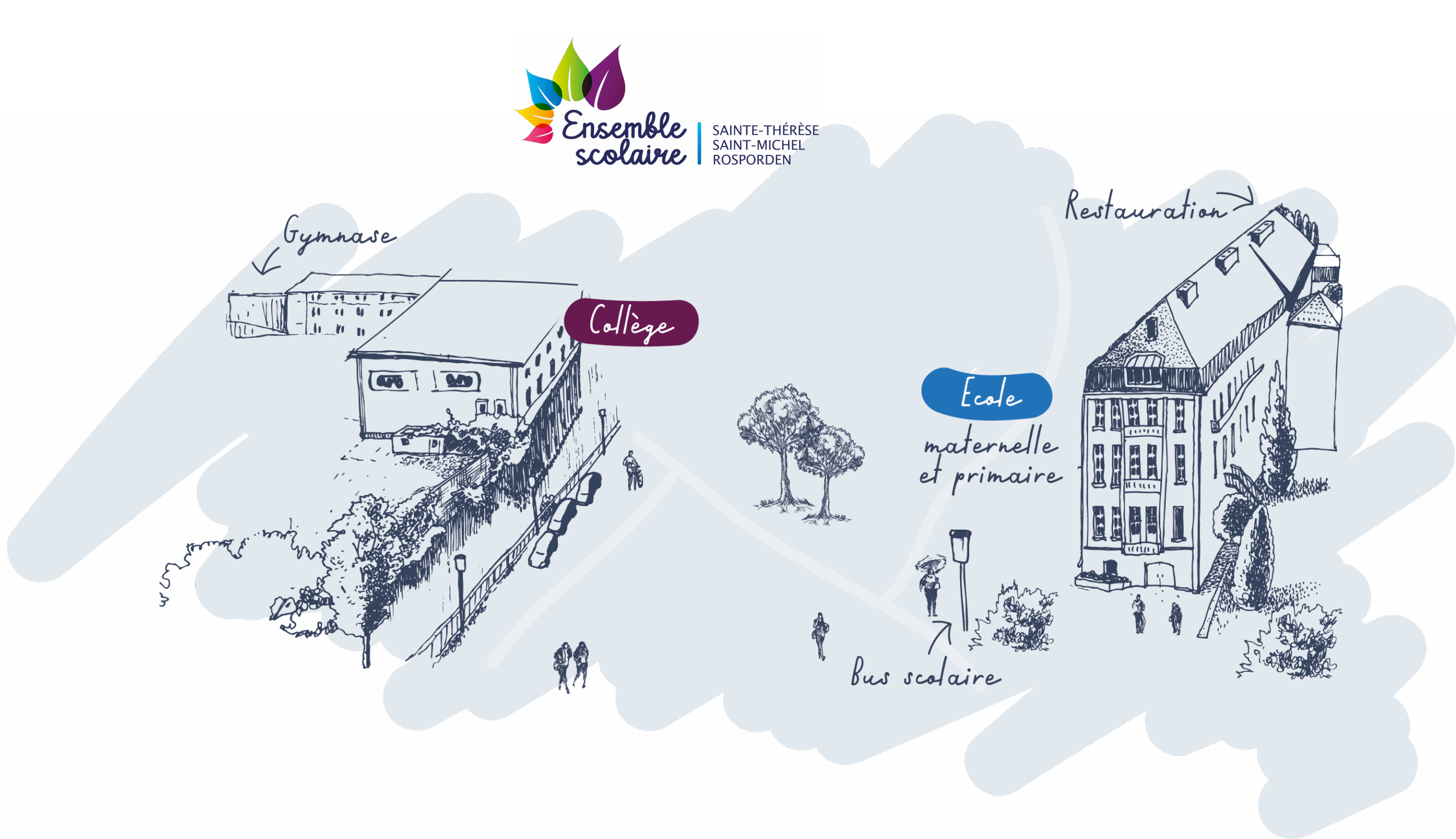 Implanté au cœur de Rosporden, l’ensemble scolaire Sainte-Thérèse – Saint-Michel accueille les élèves de la maternelle à la Troisième dans un cadre éducatif cohérent, bienveillant et dynamique. L’école Sainte-Thérèse et le collège Saint-Michel travaillent en étroite collaboration afin d’assurer une continuité pédagogique solide et rassurante pour les élèves et leurs familles. Partage des infrastructures, accompagnement personnalisé à chaque étape de la scolarité, projets communs et engagement solidaire : notre ensemble scolaire place l’épanouissement, la réussite et le vivre-ensemble au cœur de son projet éducatif.